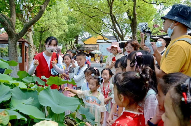 身着汉服,行于荷塘,花影朦胧,好一份诗情画意!近日,在金山公园开展了“荷”你有约·汉服游园摄影写生活动,在金山莲心志愿服务队队员的陪伴下,小记者们一起赏荷、跟随资深摄影记者学习摄影、随文化馆的老师描绘荷花。