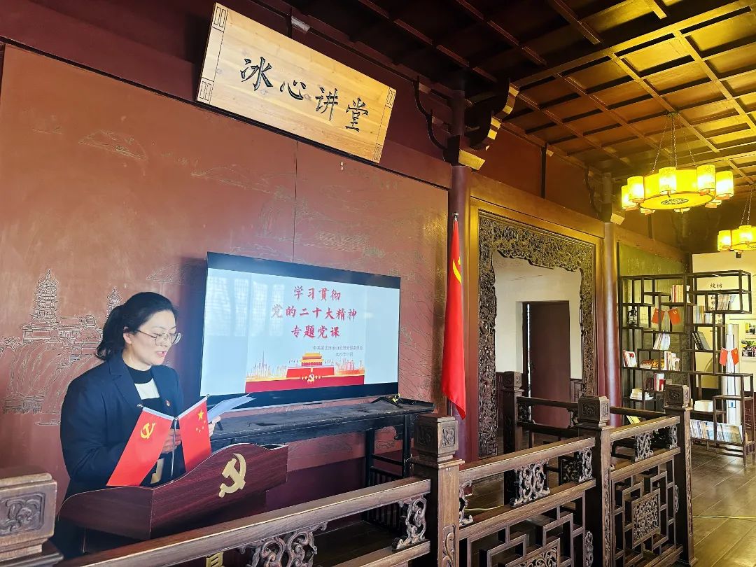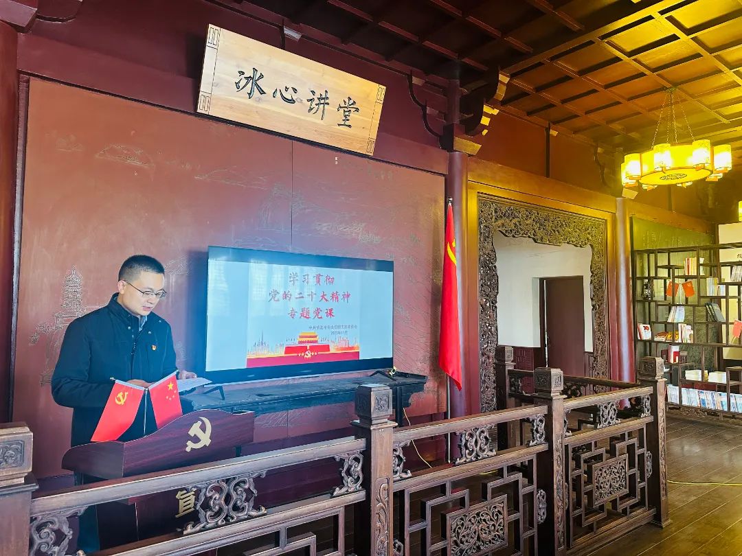 聚焦二十大 携手奋进向未来 为充分认识二十大的重要意义,深入领会党的二十大精神实质,贯彻学习习近平总书记在党的二十大上的报告精神,11月3日,金山公园党支部在芙蓉楼组织开展学习贯彻党的二十大精神专题党课活动。
