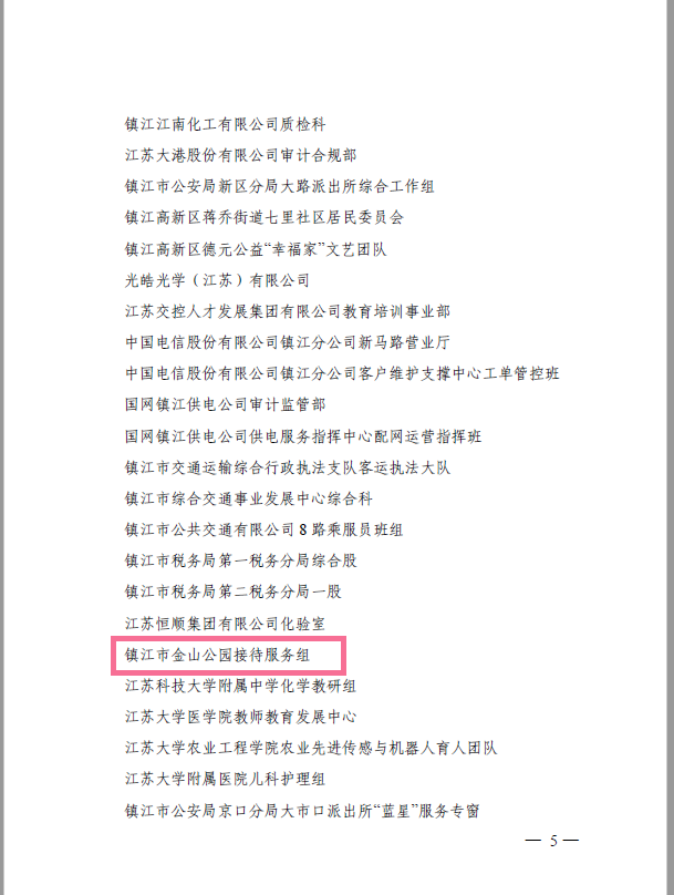 【喜报】镇江市金山公园接待服务组被授予镇江市级“巾帼文明岗”称号 |