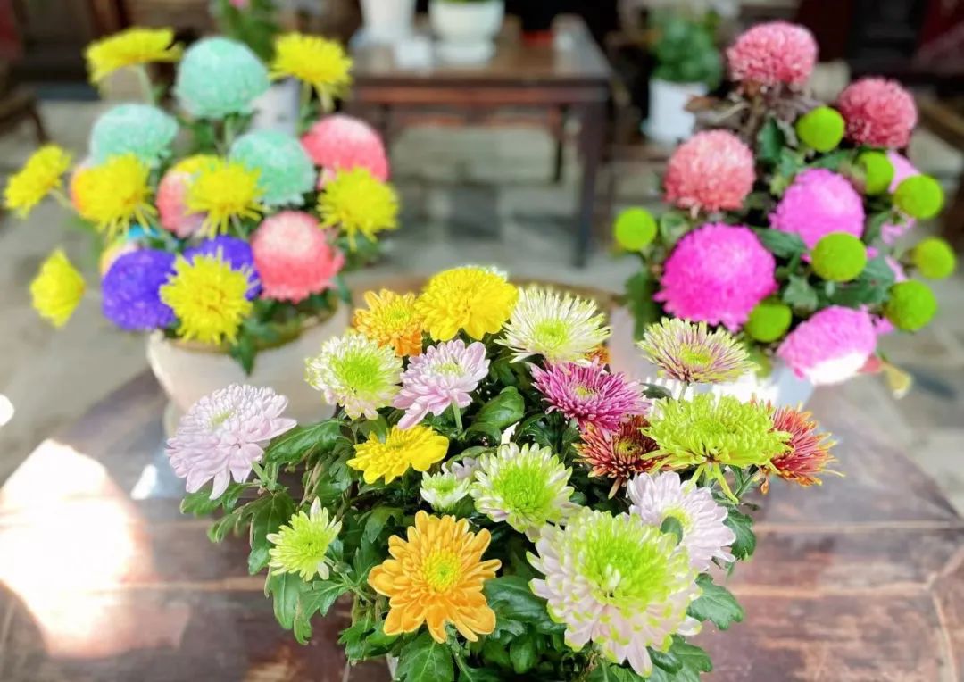 百余种千余株精品菊花为市民游客呈现一场秋日盛宴,金背大红、春醉万里、粉面金刚、金越黄等菊中珍品悉数登场, 无论是单瓣还是重瓣,每一朵菊花都如一颗明珠般璀璨动人。